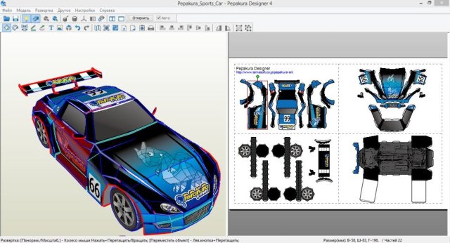 - Возможность объединения 3D модели и 2D развернутого изображения в один файл для последующего просмотра в Pepakura Viewer