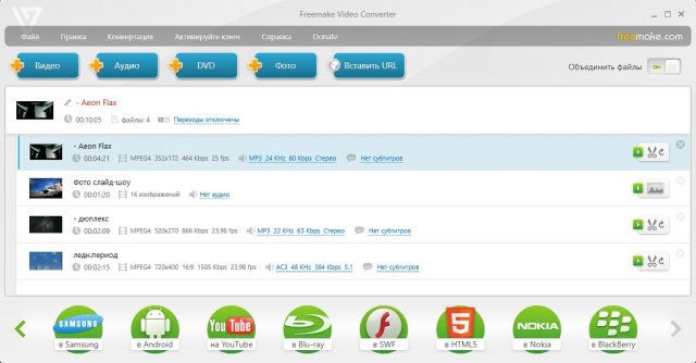 Freemake Video Converter - программа для быстрого преобразования и редактирования видео в популярные форматы (поддержка более 300 форматов), а также подготовки видео для просмотра на мобильных устройствах, создния слайд-шоу, извлечения звука из видеофайлов и другое.
