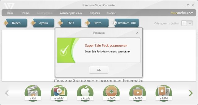 Скачать программу Freemake Video Converter 4.1.10.51 Gold (35,97 МБ):