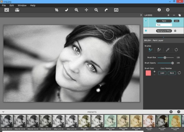 - Hand Tint может быть использована для простой доработки (например, нанесения румян), создания черно-белых фотографий или добавления эффекта “свечения” на фото через настройки яркости.