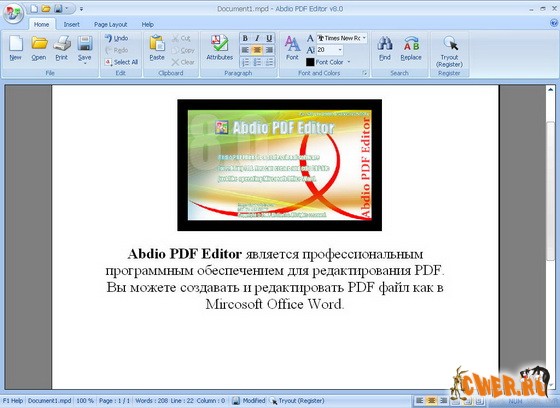Обновленная, восьмая версия Abdio PDF Editor (MicroAdobe PDF Editor) является профессиональным программным обеспечением для редактирования PDF. Вы можете создавать и редактировать PDF файл как в Mircosoft Office Word.