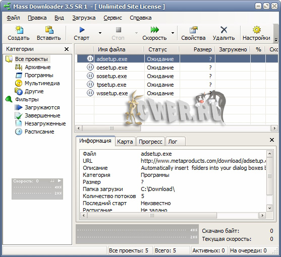Вышла новая версия менеджера закачек Mass Downloader, который позволяет пользователям загружать отдельные файлы или целые списки файлов с сайтов или ftp-серверов с максимально возможной скоростью и удобством. Высокая скорость работы достигается за счет распараллеливания скачиваемых потоков. Помимо стандартных функций (многопоточная закачка, встроенный ftp-браузер, работа по расписанию, поддержка прокси и т.д.) есть полезная функция просмотра zip-архивов на сервере и скачивание только нужных файлов из архива. Программа с поддержкой русского языка и возможностью встраивания в популярные браузеры.
