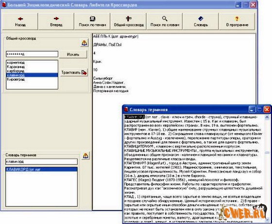 С помощью словаря можно не только достаточно легко найти ответы на многочисленные вопросы в кроссвордах различной степени сложности,но и применять его для поиска и правильной формулировки вопросов при составлении кроссвордов.