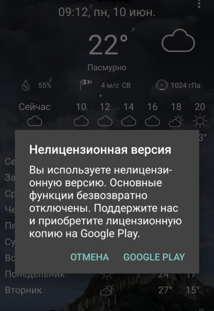 Телефон обновился до 9-ки и прога прекратила нормально работать. Написала, что нелицензионная и т.д.