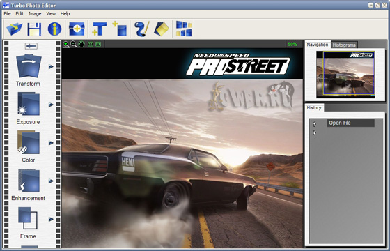 Turbo Photo состоит из двух частей: редактора и фотоальбома для организации, просмотра и распечатывания снимков. Turbo Photo позволяет устранить "шум" с фотографии, избавиться от дефектов кожи, добавить на снимки рамки и надписи, сохранить набор изображений в виде слайд-шоу. Поддерживается обработка фотографий в пакетном режиме.