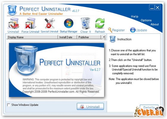 Скачать Perfect Uninstaller 6.2.7 (2,25 МБ):