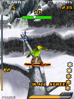 Игра для мобильных телефонов. Слететь на сноуборде с хорошей горки, обойти все флажки и не навернуться со случайно подвернувшейся кочки . вот залог здоровья, веселья, отменного аппетита и крепкого сна! Размеры экранов: 240х320.