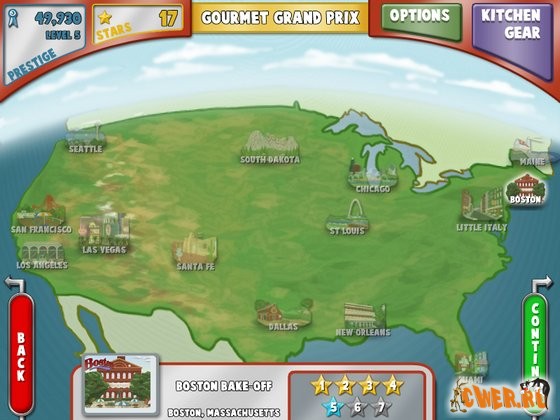 Ставки растут, когда вы соревнуетесь с лучшими поварами страны на Гран При Гурманов. Отправляйтесь в дорогу и крепче держите свою лопаточку, чтобы выступить против богатого разнообразия американской кухни.