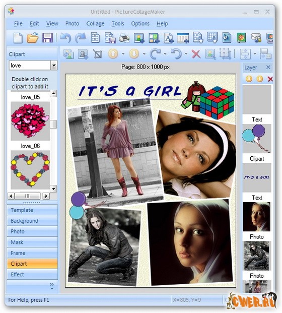 Picture Collage Maker - это простой интерфейс программы и множество шаблонов позволяющих легко создавать разнообразные фотоколлажи (календари, поздравительные открытки, пригласительные билеты, постеры и т.д.) даже неопытным пользователям. Помимо этого, в программе имеется большое количество масок, рамок и клипартов. Создание коллажей - это расслабляющее времяпровождение помогающее превращать собранные фотографии в драгоценные воспоминания.
