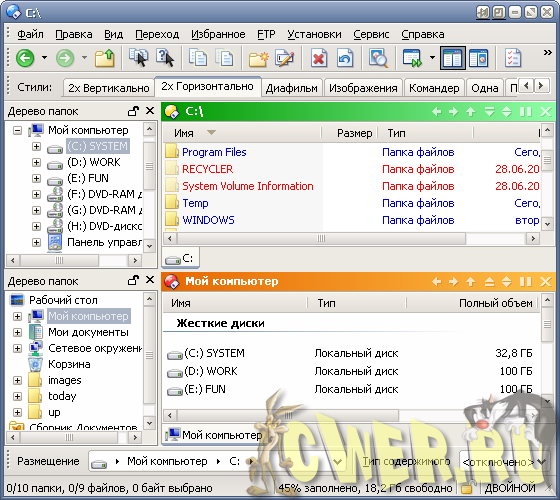 Directory Opus - мощная альтернатива Проводнику с настраиваемым интерфейсом, встроенным ftp-клиентом, внутренней поддержкой архивов, просмотром изображений, встроенным командным языком, настраиваемыми горячими клавишами для управления и очень большим числом других полезных при работе с файлами опций. Например, поиск дубликатов, безвозвратное удаление файлов, поддержка SSL и SSH/SFTP, конвертирование графики и т.д. CWER.ws рекомендует!