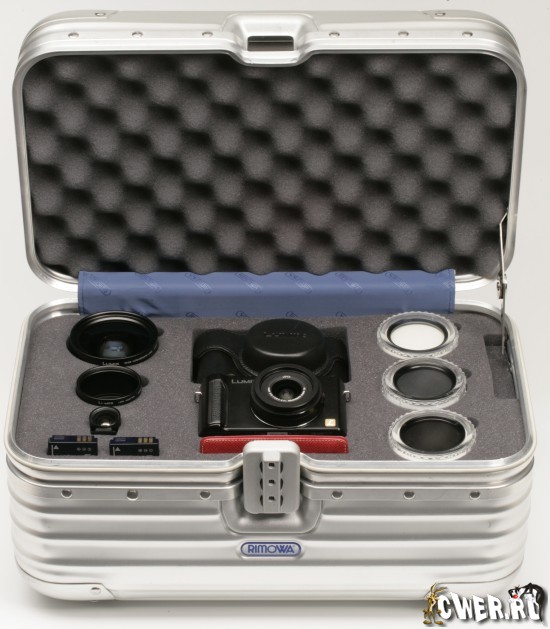 Итак, за что же производитель просит 70 тысяч рублей? Кроме самой камеры, в набор входит широкоугольная конверсионная насадка, которая обеспечивает возможность использования фокусного расстояния 18 мм. Также в наборе имеются нейтральный и поляризационный фильтры, внешний алюминиевый оптический видоискатель, футляр из натуральной кожи и чехол для хранения SD-карт. Сам комплект поставляется в стильном алюминиевом кейсе. Спецпредложение ограничено и будет доступно только в России.