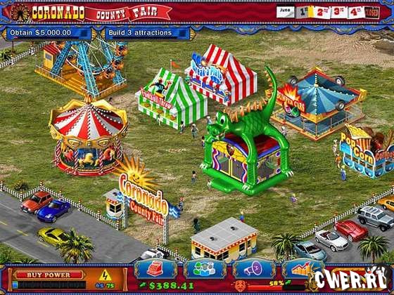 County Fair сочетает в себе два типа игры - тайм-менеджмент и стратегию. Сумейте позаботиться о развитии своего ярмарочного бизнеса. Украшайте ярмарку аттракционами, игровыми стендами и различными достопримечательностями. Продавайте посетителям различные деликатесы, нанимайте рабочий персонал. Также вам придется правильно распределять прибыль и заказывать рекламу для того, чтобы увеличить количество посетителей.