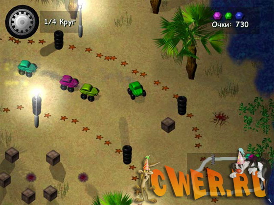 Гонки без дорог - это захватывающая и интересная компьютерная игра, в которой ты управляешь маленькой шустрой движущейся по треку машинкой. Твоя задача - финишировать первым. Эта двухмерная игра проста в управлении! Крутые замысловатые повороты натренируют внимательность и умение ориентироваться в пространстве. Быстрые соперники не дадут тебе расслабиться. Трасса под полным контролем - ты наблюдаешь за всем сверху. Держи руль крепче, и тогда тебе все будет ни по чем. Хочешь прокатиться с ветерком? Скачивай и играй!