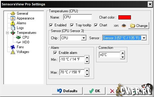 SensorsView Pro - небольшая программа, которая осуществляет мониторинг температур процессора, материнской платы, жестких дисков, отслеживает изменения напряжений и скоростей вращения крыльчатки вентиляторов.