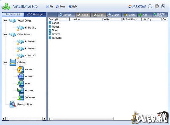 Эмулятор VirtualDrive позволяет сохранять на жестком диске копии CD или DVD-носителей в виде сжатых образов или «виртуальных дисков», для воспроизведения которых может использоваться один из 23 виртуальных приводов, создаваемых программой.