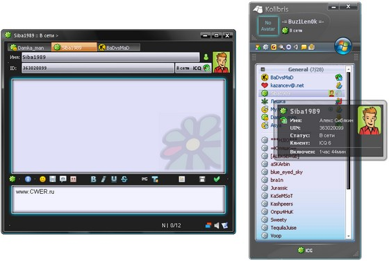 - Поддержка сетей: ICQ, JABBER;