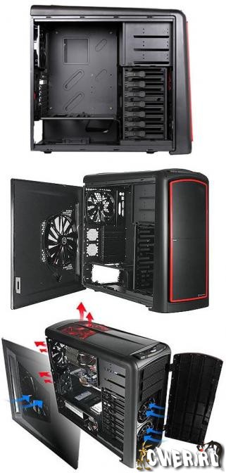 - Система охлаждения включает наличие одного фронтального кулера TurboFan (размеры 120 х 120 х 25 мм, скорость вращения 1300 оборотов в минуту, уровень шума 17 дБ), одного тылового кулера TurboFan (размеры 140 х 140 х 25 мм, скорость вращения 1000 оборотов в минуту, уровень шума 16 дБ), одного кулера с красной светодиодной подсветкой сверху (размеры 230 x 230 x 20 мм, скорость вращения 600 оборотов в минуту, уровень шума 15 дБ), двух опциональных 60-мм кулеров для дополнительного обдува зоны размещения видеокарт(ы) и одного вентилятора типоразмера 230 x 230 x 20 мм на боковой панели (только у VK60001W2Z);