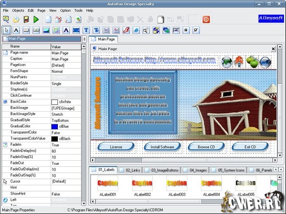 AutoRun Design Specialty - это программа для создания меню автозапуска диска. Содержит удобные инструменты для создания оригинального индивидуального меню. Есть возможность добавлять различные элементы, такие как страница лицензионного соглашения, заставка, появляющаяся при вставке диска в привод, окно, сопровождающее закрытие меню и т. д.