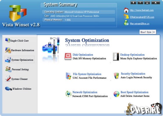 Vista Winset is an all-in-one system utility to optimize,clean up,maintain and speed up your PC.make your computer always perform like new.It also gathers detailed and accurate software and hardware information for you to know your PC . Vista Winset set of more than 40+ tools are designed for PC's peak performance. Vista Winset has more then 30+ windows utilities to daily use. So that you can customize your Copy of Windows Vista/Xp/2000/2003/2008 to be Your Personal Copy.