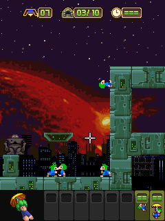 Игра для мобильных телефонов. Знаменитые герои одной из самых известных компьютерных игрушек всех времен, лемминги, вернулись! Вам снова предстоит спасать этих прелестных рассеянных создании за ограниченное время на уровнях, где полно хитрых ловушек и пропастей. Размеры экранов: 176х220, 240х320.