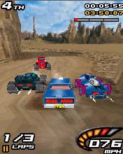 Игра для мобильных телефонов. Головокружительно-быстрая трехмерная гонка с сильными соперниками в самых опасных местах Земли! Размеры экранов: 176x220, 240x320, 352x416.