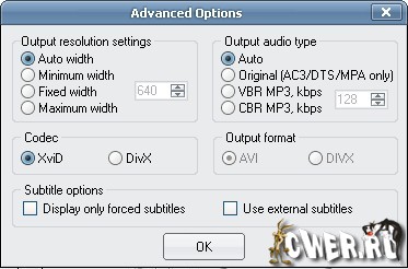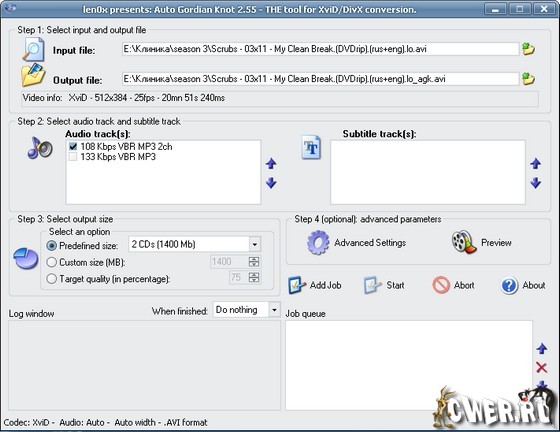 Например, можно уместить фильм на 1 CD или выставить произвольный размер полученного DivX и XviD файла. Предусмотрена возможность работы сразу с несколькими фильмами в порядке очереди. Эта функция весьма удобна, т.к. можно дать программе сразу несколько заданий на преобразование фильмов из DVD в DivX или XviD формат.