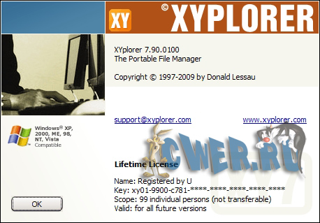 XYPlorer - продвинутый файловый менеджер, работающий под Win98/NT/ME/2000/XP/Vista, достойная замена проводнику Windows, с поддержкой вкладок. Мощный поисковый механизм; предосмотр мультимедийных файлов , графики, аудио, видео; HEX и ASCII просмотрщик файлов; работа с mp3-тегами; широкие возможности для визуализации (выделение цветом избранных папок и пр.); формирование фильтров отображения файлов; экспорт информации о файлах в CSV формат и многое другое. XYplorer не оставляет записей в реестре, поэтому возможна работа со сменных носителей, например с флеш носителях.