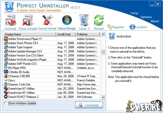 Perfect Uninstaller - программа для полного удаления нежелательных программ, которые нельзя удалить с помощью стандартного диалога удаления и установки программ Windows. С этой программой вы сможете удалять ненужные приложения в вашей системе быстрее и легче. Стандартный диалог установки и удаления программ часто не может удалить определенные приложения или сломанные ключи реестра, в отличие от данной утилиты, программа не только позволит вам удалить приложения, но и очистит ваш ПК от поврежденных записей в системном реестре, улучшая производительность и скорость вашей системы. Кроме того, с помощью этого приложения вы сможете узнать детальную информацию о том, какие файлы и записи реестра затронула установка той или иной программы. Интерфейс программы прост и легок в использовании.
