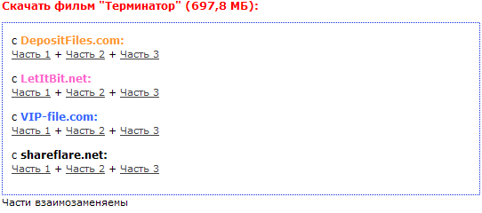 6.7. О файлах, состоящих из нескольких частей. Части должны идти по порядку от первой к последней. Скрипт добавления ссылок автоматически верно вставит ссылки и на разбитые на несколько частей файлы, если ссылки будут идти по порядку (см. рисунок ниже)
