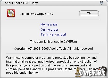 Скачать Apollo DVD Copy 4.8.42 (1,35 МБ):