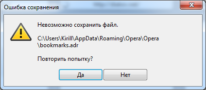Подскажите пожалуйста кто-нибудь как исправить, окно высвечивается постоянно. Установленная версия на Win 7 x64. Это проблема с сохранением закладок?