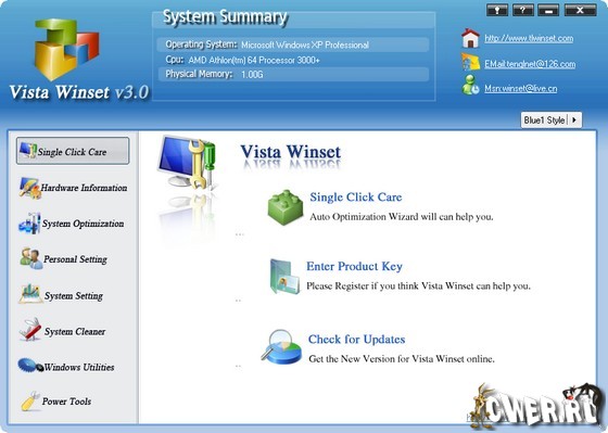 Vista Winset - новая версия программы-оптимизатора для Windows Vista, а также операционных систем Windows 2000/2003/XP/2008. Она предназначена для ускорения работы системы и повышения ее стабильности и безопасности. Программа выдает подробную информацию обо всех компонентах компьютера и о запущенных процессах. С помощью Vista Winset можно ускорить запуск и завершение работы системы, произвести поиск ненужных и дублирующихся файлов и удалять их, исправить ошибки в реестре, провести дефрагментацию реестра, отключить системные обновления и отчеты об ошибках. Кроме этого, доступно множество операций, связанных с настройкой внешнего вида системы: можно изменить содержание контекстных меню, настроить оповещающие сообщения, задать автоматическую смену обоев. Оптимизирует работу с сетью.