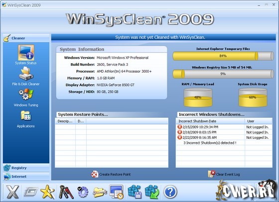 Скачать WinSysClean 2009 9.05 Build 3170 (11,01 МБ):