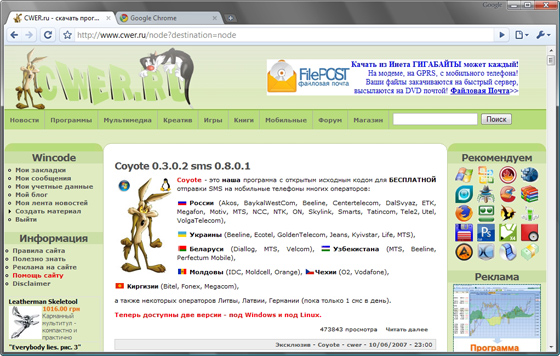 Google Chrome - веб-браузер производства Google с открытым исходным кодом, сочетающий поддержку веб-приложения и удобный поиск с высокой скоростью и стабильностью. В Chrome использованы наработки Apple WebKit и Mozilla Firefox. Из особенностей Chrome разработчики особо выделяют изолированные вкладки, предотвращающие сбой работы программы и обеспечивающие более надёжную защиту от опасных сайтов. Кроме этого, в Chrome реализован новый движок JavaScript V8, который позволит браузеру работать с веб-приложениями нового поколения.