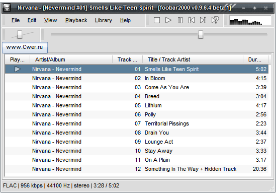 foobar2000 - аудиоплеер, основные черты которого качественный звук, широкие возможности настройки, спартанский интерфейс и низкие системные требования. Foobar проигрывает файлы форматов MP1, MP2, MP3, MP4, MPC, AAC, Ogg Vorbis, FLAC / Ogg FLAC, WavPack, WAV, AIFF, AU, SND, CDDA, WMA (другие форматы могут поддерживаться при установке соответствующих плагинов). Имеется полная поддержка unicode. В программе использован новый формат плейлистов (m3u8) и поддерживается чтение APEv2-тэгов из файлов MP3.