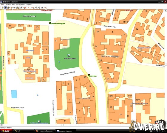 Детальная карта улиц и строений Харькова от геоинформационной поисковой системы "Визиком". Карта снабжена набором инструментов: "поиск объектов", "выбор объектов", "распознавание объектов на карте", "измерение расстояний".