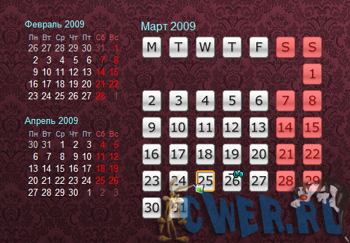 К сожалению, многим электронным органайзерам при всей их внушительной функциональности часто не хватает наглядности – так, чтобы просто посмотреть на Рабочий стол и сразу все вспомнить, без необходимости искать ярлык этого самого органайзера или «вытягивать» его из Systray. Active Desktop Calendar такого «недуга» лишен в принципе, ведь его создатели сумели объединить в одной программе мощный органайзер и утилиту по смене обоев, которые всегда на виду, но в то же время не мозолят глаза. В центре Рабочего стола ADC создает интерактивный календарь за последний, нынешний и следующий месяцы, а в правом углу – элегантную полупрозрачную панель с заданиями на ближайшую неделю. Щелкнув мышью по нужному числу месяца, пользователь моментально увидит запланированный список дел на этот день и тут же сможет его подкорректировать.