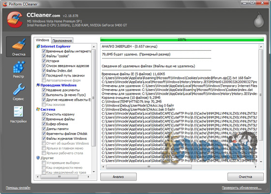 CCleaner, в зависимости от настроек, чистит следующие компоненты Windows: