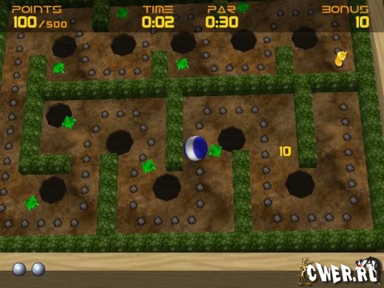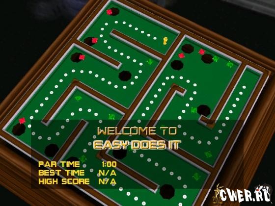 Классическая настольная игра, перенесённая в компьютерный век. Многим она наверняка знакома по телеигре "Ключи от форта Байярд". Задача играющего - управляя наклонами стола, провести шар из одной точки лабиринта в другую. Однако задача осложняется тем, что лабиринт наполнен дырами-ловушками. Проверьте своё чувство баланса, проводя шарик через лабиринт и не забывая собирать по пути различные бонусы, которые принесут вам дополнительные очки.