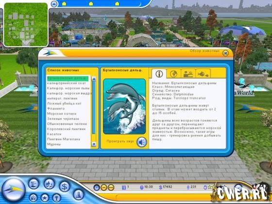 Стройте морские аттракционы, бассейны, аквариумы, дельфинарии и множество других сооружений, чтобы сделать счастливыми тысячи восторженных туристов. Дрессируйте касаток, дельфинов и прочих морских млекопитающих и устраивайте феерические водные шоу. В режиме содержания животных вы сможете ухаживать за акулами, пингвинами, морскими львами и огромным количеством других представителей морской фауны.