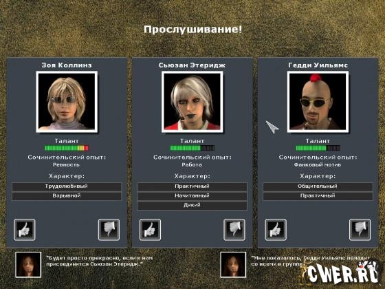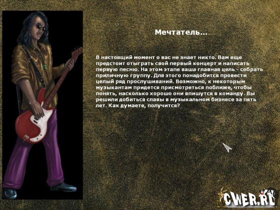Они пока еще ничего не умеют, не особенно рвутся работать, но зато полны амбиций. От вас требуется немного: писать песни, организовывать выступления, покупать новые инструменты, добиваться выгодных контрактов, чтобы в конечном счете привести группу к вершине рок-н-рольной славы.