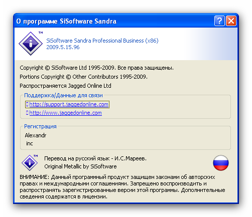 Скачать SiSoftware Sandra Pro Business 2009.5.15.96 (19,97 МБ):