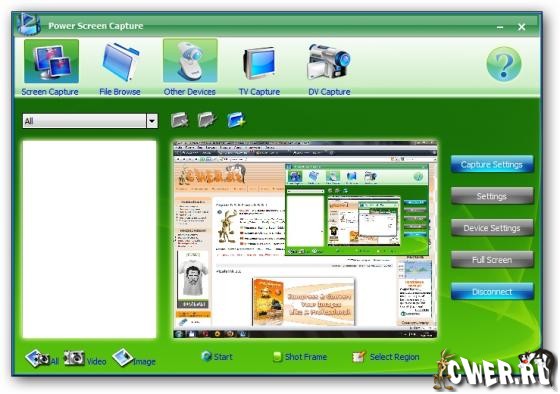 Мощная программа захвата всего что происходит на экране монитора с высоким качеством а так же захвата изображений с различных устройств типа DV видео и вэб-камер, TV тюнеров и прочих девайсов, в режиме реального времени. Возможна установка выходных параметром захваченного материла: видео и аудио кодеков, размер рамки и кадров в секунду и пр. Присутствует так же возможность нанесения водяных знаком и текстовых надписей.
