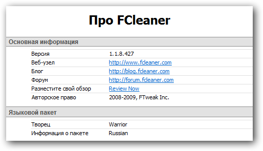 Скачать программу FCleaner 1.1.8.427 (1,07 МБ):