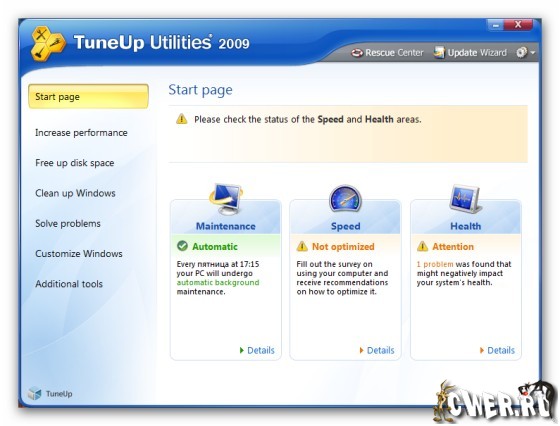 TuneUp Utilities 2009 - компактный пакет системных утилит с мощными возможностями: чистка и исправление ошибок системного реестра, восстановление и безвозвратное удаление данных, оптимизация оперативной памяти, менеджер процессов и автозагрузки, корректное удаление ставшего ненужным ПО, управление сетевыми параметрами, оптимизация интернет-соединения, настройка "скрытых" параметров системы, подробная информация о системе и многое другое.