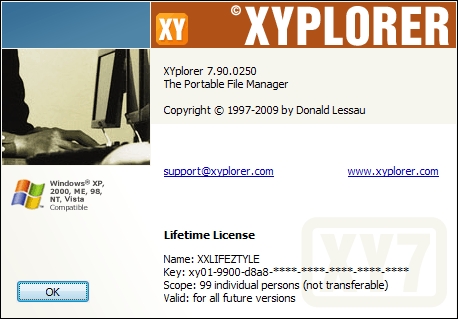 XYPlorer - продвинутый файловый менеджер, работающий под Win98/NT/ME/2000/XP/Vista, достойная замена проводнику Windows, с поддержкой вкладок. Мощный поисковый механизм; предосмотр мультимедийных файлов , графики, аудио, видео; HEX и ASCII просмотрщик файлов; работа с mp3-тегами; широкие возможности для визуализации (выделение цветом избранных папок и пр.); формирование фильтров отображения файлов; экспорт информации о файлах в CSV формат и многое другое. XYplorer не оставляет записей в реестре, поэтому возможна работа со сменных носителей, например с флеш носителях.
