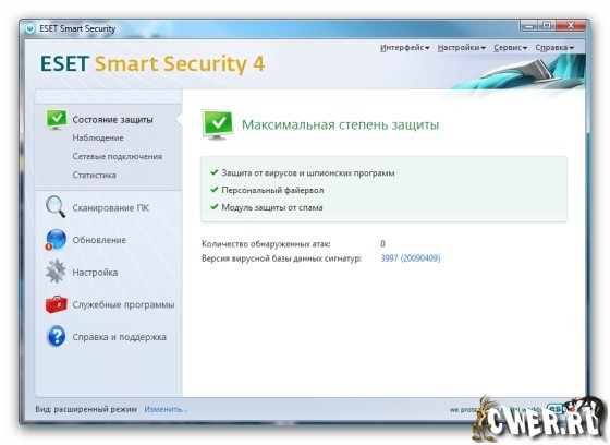 Скачать ESET Smart Security Home Edition v4.0.424 - 32-bit (35 МБ):