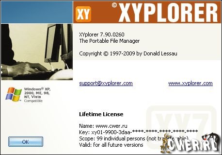 XYPlorer - продвинутый файловый менеджер, работающий под Win98/NT/ME/2000/XP/Vista, достойная замена проводнику Windows, с поддержкой вкладок. Мощный поисковый механизм; предосмотр мультимедийных файлов , графики, аудио, видео; HEX и ASCII просмотрщик файлов; работа с mp3-тегами; широкие возможности для визуализации (выделение цветом избранных папок и пр.); формирование фильтров отображения файлов; экспорт информации о файлах в CSV формат и многое другое. XYplorer не оставляет записей в реестре, поэтому возможна работа со сменных носителей, например с флеш носителях.