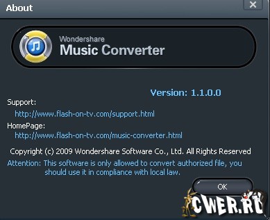Скачать Wondershare Music Converter 1.1.0.0 (6,01 МБ):