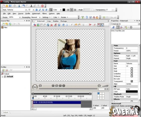 Watermark Master - предназначена для добавления водяных знаков на графику и видео. В качестве водяного знака программа позволяет использовать текстовую надпись, изображение, анимированный файл GIF, видеоклип, различные векторные фигуры.